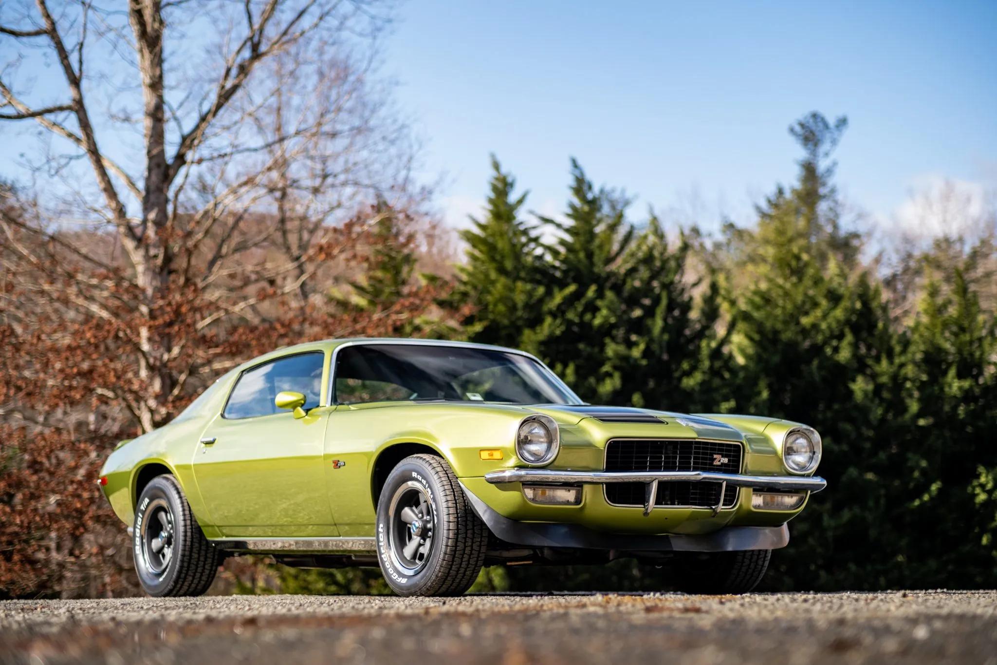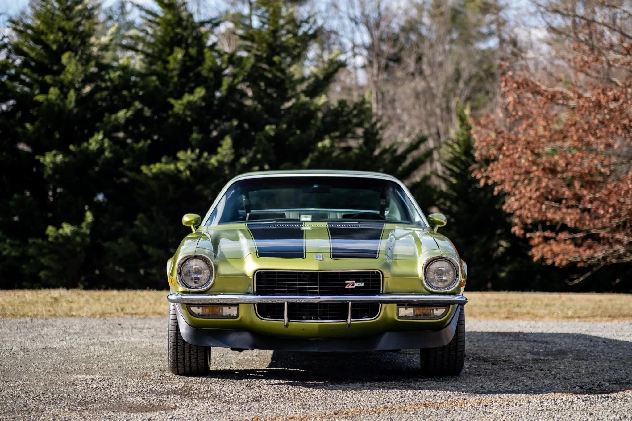 This 1970 Chevrolet Camaro Z28 was acquired by the seller in 2020 from its previous owner of 43 years and was later disassembled and repainted in green with black stripes. Power comes from the numbers-matching 350ci LT1 V8, rebuilt and upgraded by Cropp Performance Solutions in Virginia with Edelbrock aluminum heads, Holley fuel injection, a Howards camshaft, Speed-Pro pistons, and Hooker ceramic-coated headers. Power is delivered through a four-speed manual transmission and a dual exhaust system with an X-pipe.