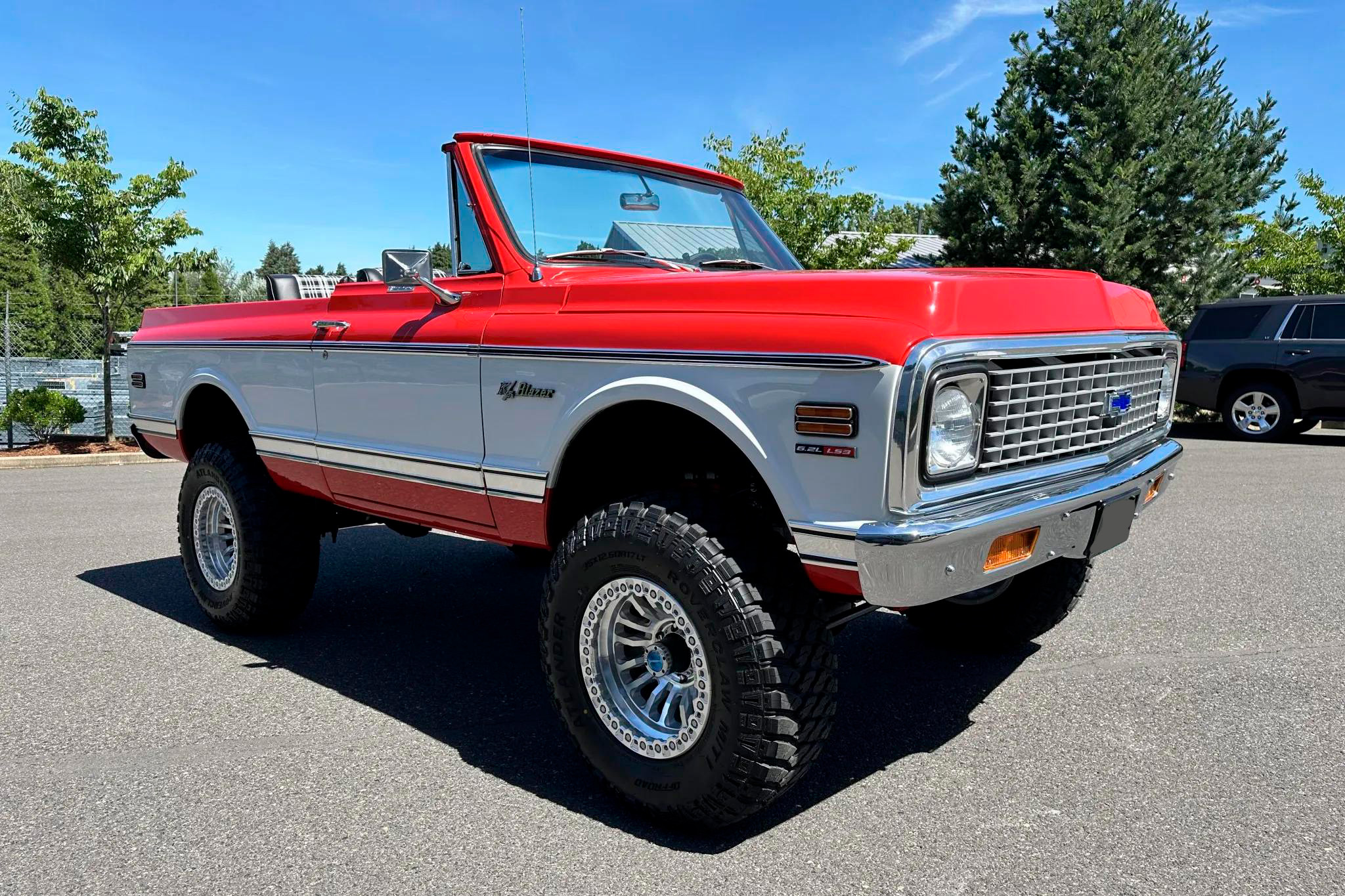 This 1972 Chevrolet K5 Blazer CST 4�4 was refurbished and modified between 2022 and 2024. It is powered by a 6.2L LS3 V8 paired with a 4L70E four-speed automatic transmission and a dual-range transfer case. The truck rides on a suspension lift and 17" Fuel Rincon beadlock wheels wrapped in 35�12.5" Atlander Roverclaw M/T tires, and stopping power comes from front discs with Hydroboost and rear drums.